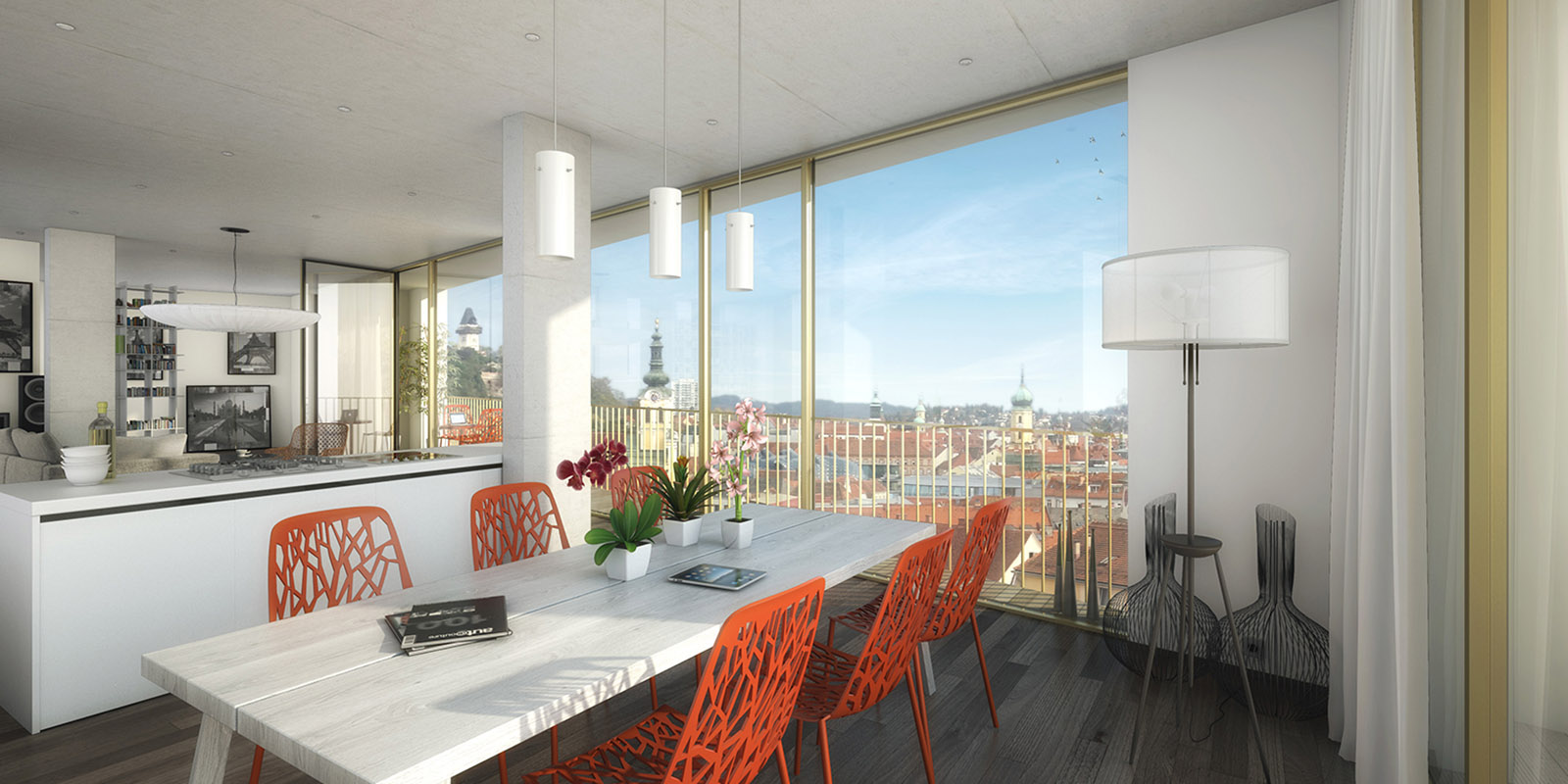 Hoch hinaus – direkt im Grazer Zentrum! Im Annenviertel entstand ein 11-geschossiges Hochhaus für Menschen, die gerne „am Puls der Stadt“ wohnen und leben. Errichtet wurden 23 Wohneinheiten mit Größen von 32 bis 136m². Das exklusive Penthouse mit riesiger Dachterrasse bietet einen Rundum-Blick über ganz Graz.